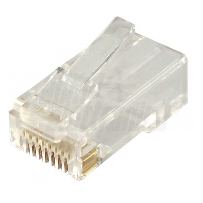 Spina RJ45 8P8C Cat.5e UTP AWG24-26, contatti dorati per cavo flessibile e grigio.