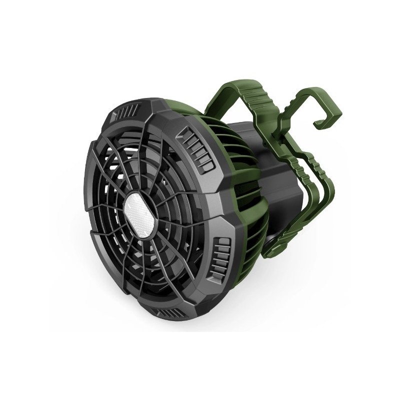 Ventilatore da campeggio ricaricabile con luce LED Ø 10 cm, 5W, batteria litio, USB plug