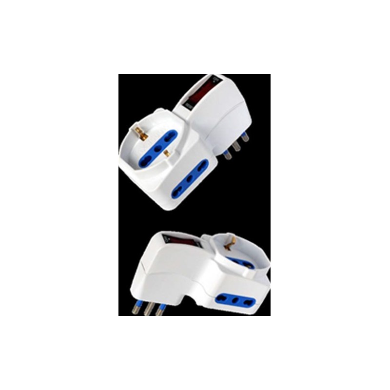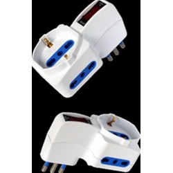 Adattatore spina 10A2 prese 10/16A+ 1presa shukoCon protezione di sovraccaricoBianco