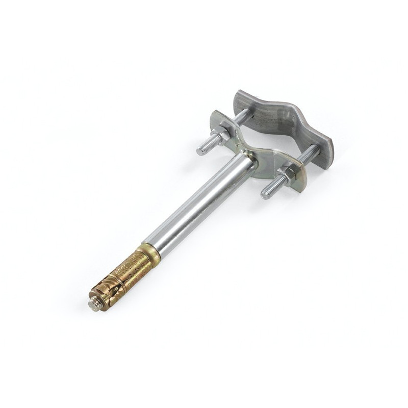 614 zanca ad espansione distanziata, dotata di tassello M10. Per il fissaggio di pali per parabole di piccolo Ø e per antenne TV, su muri irregolari o con dislivelli.