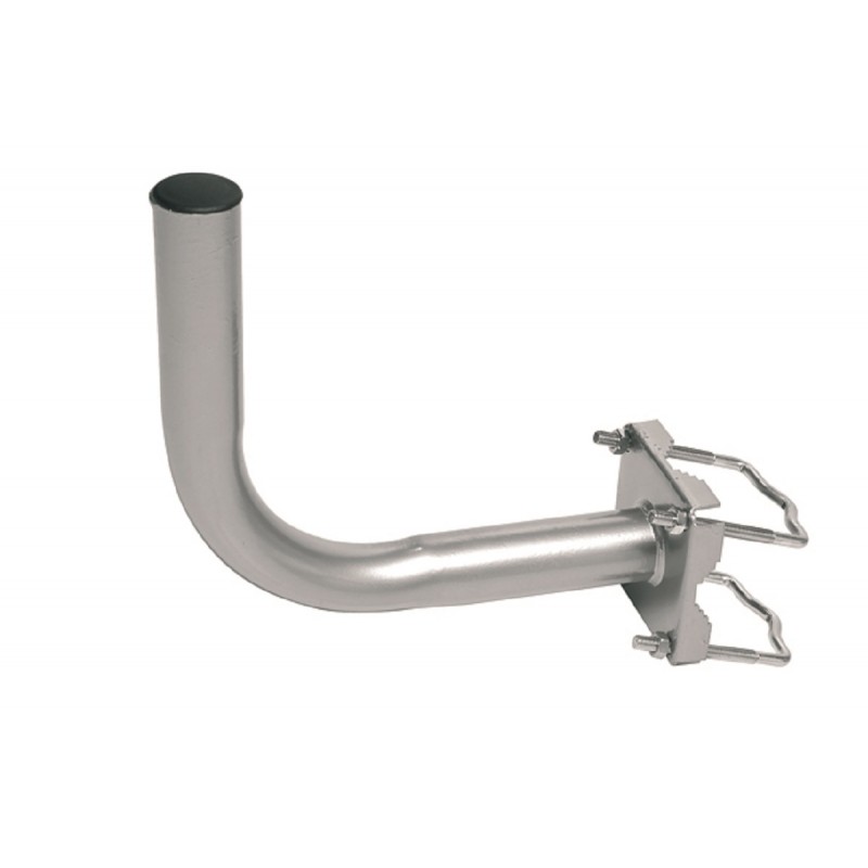 Tubo curvato saldato su piastra quadrata 10X10 cm, con 2 fissaggi a palo, pali diametro 25-50mmDiametro 40mm.