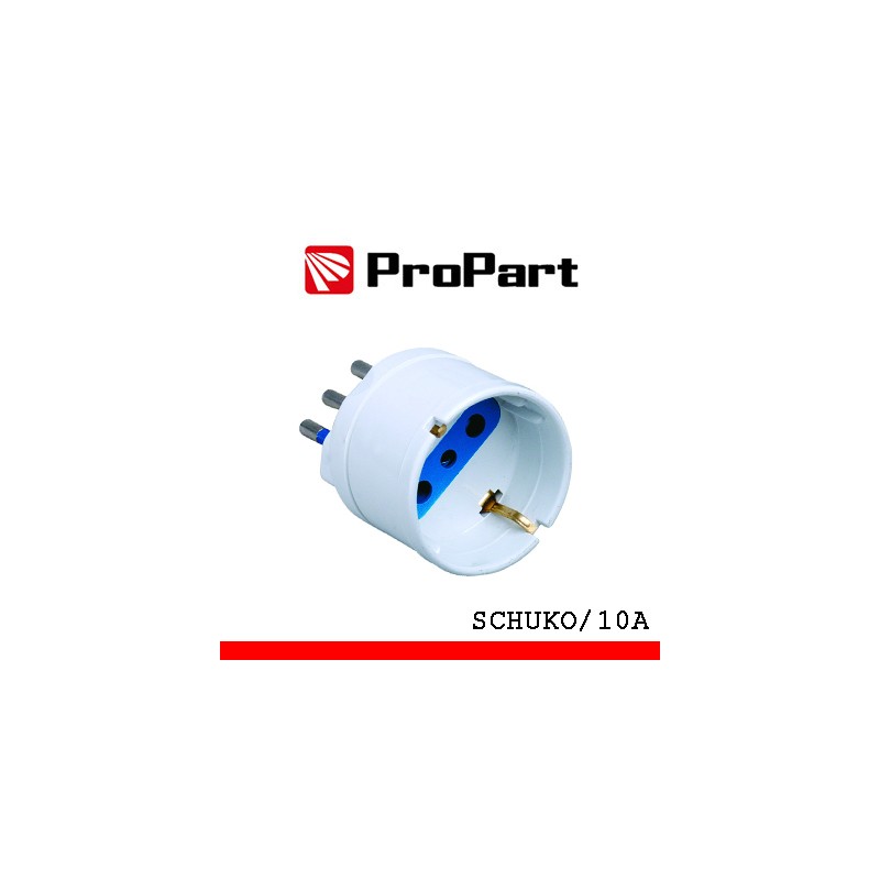 Adattatore con presa schuko/italiana 10A 2P+T, spina 10A 2P+T